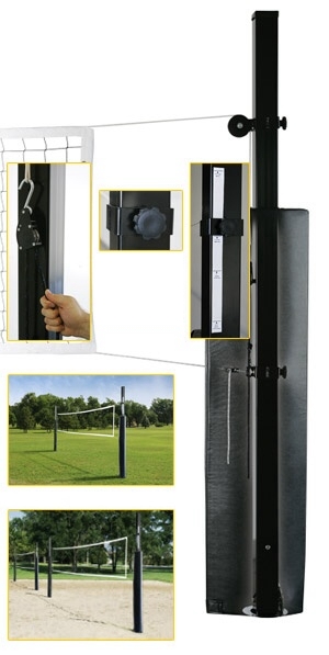 The 4" square steel powder coated uprights can be installed outdoors for either sand or grass volleyball courts. The infinitely adjustable net height from 7’ 11 5/8" (men's competition height) down to 3' (tennis net height) makes the Blast a great unit for all ages and all types of net games. Our simple net tensioning device makes setting up the unit quick and easy providing competition level net tensioning.